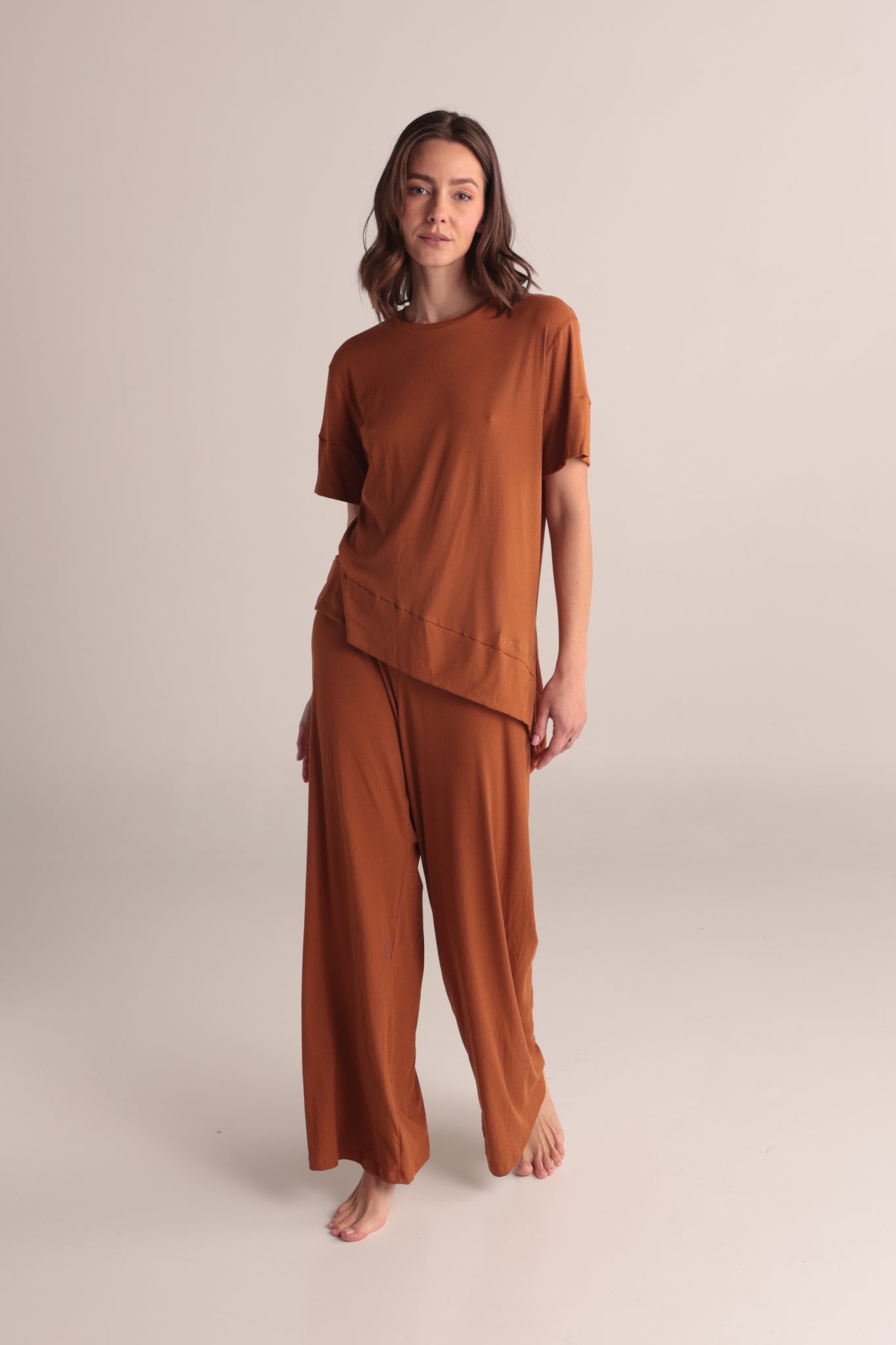 Esta nueva blusa de corte asimétrico y tacto suave es una prenda ideál  para usar en tu práctica diaria de movimiento o para tu día a día. Leva boradad la frase "Soy polvo de estrellas " Así como las constelaciones trazan el firmamento, dentro de ti también se dibuja un universo de infinitas posibilidades. Cada estrella en el cielo es un reflejo de la luz que llevas dentro, cada constelación un recordatorio de que tu ser está tejido con el mismo misterio que sostiene al cosmos.Color: Tabaco Composicion:Rayon spandex