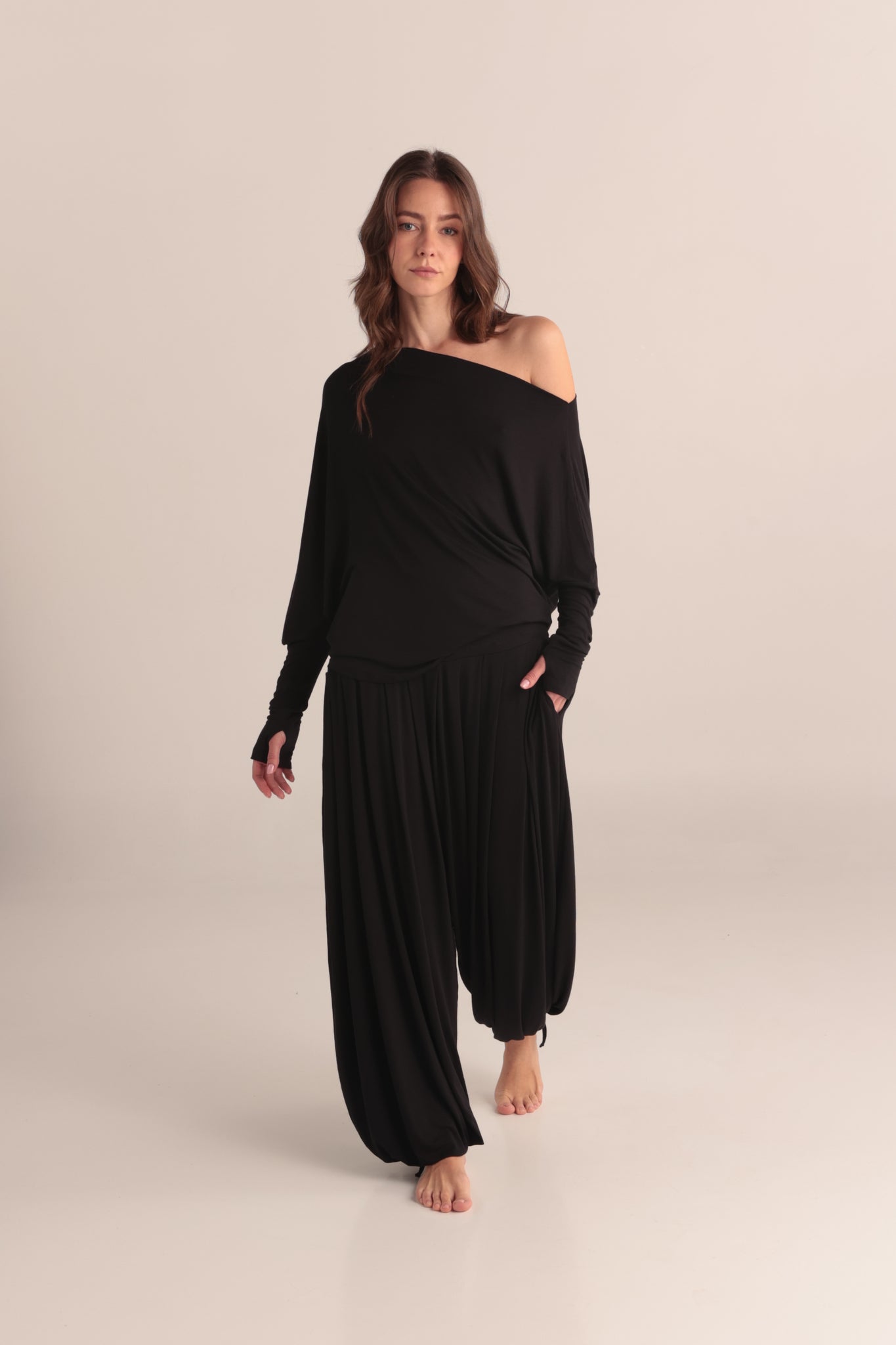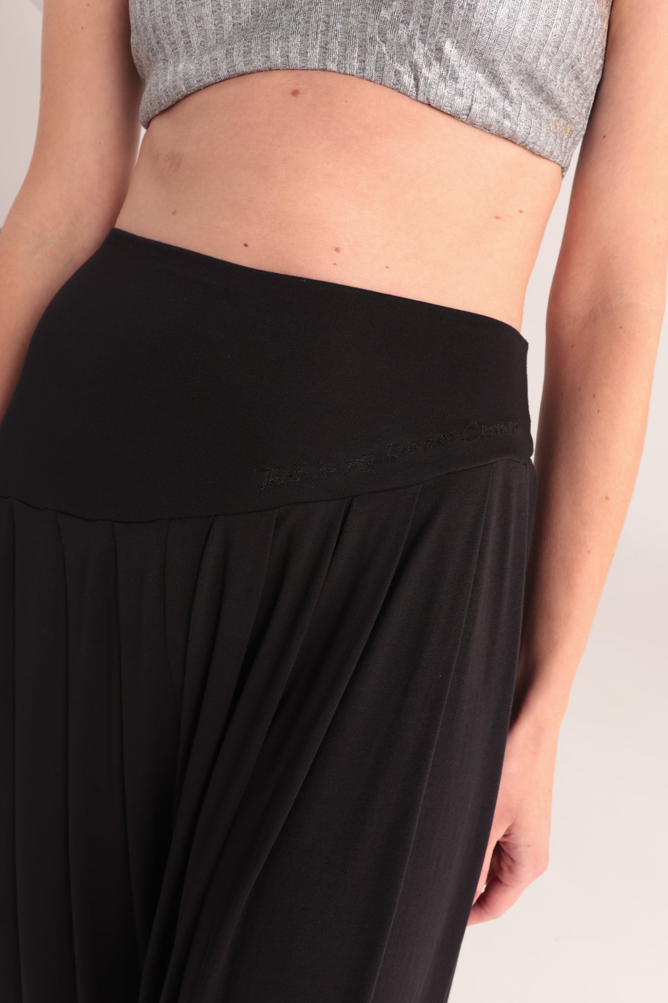 Este pantalón clásico de Triskel , ahora viene con la pretina en corte asimétrico y la frase bordada " This is my inner cosmos", es una prenda suave y femenina, ideal para estar cómoda en tu día a día o en tu practica de yoga .  Cada prenda es más que tela: es un recordatorio de que somos polvo de estrellas, de que el infinito no está afuera sino en lo profundo de tu interior. Al vestirlas, no solo te cubres de comodidad y belleza, también vistes la verdad cósmica de tu ser: eres universo en movimiento, eres constelación viva, eres luz encarnada.        Color:Negro   Composicion: Rayon  - Spandex