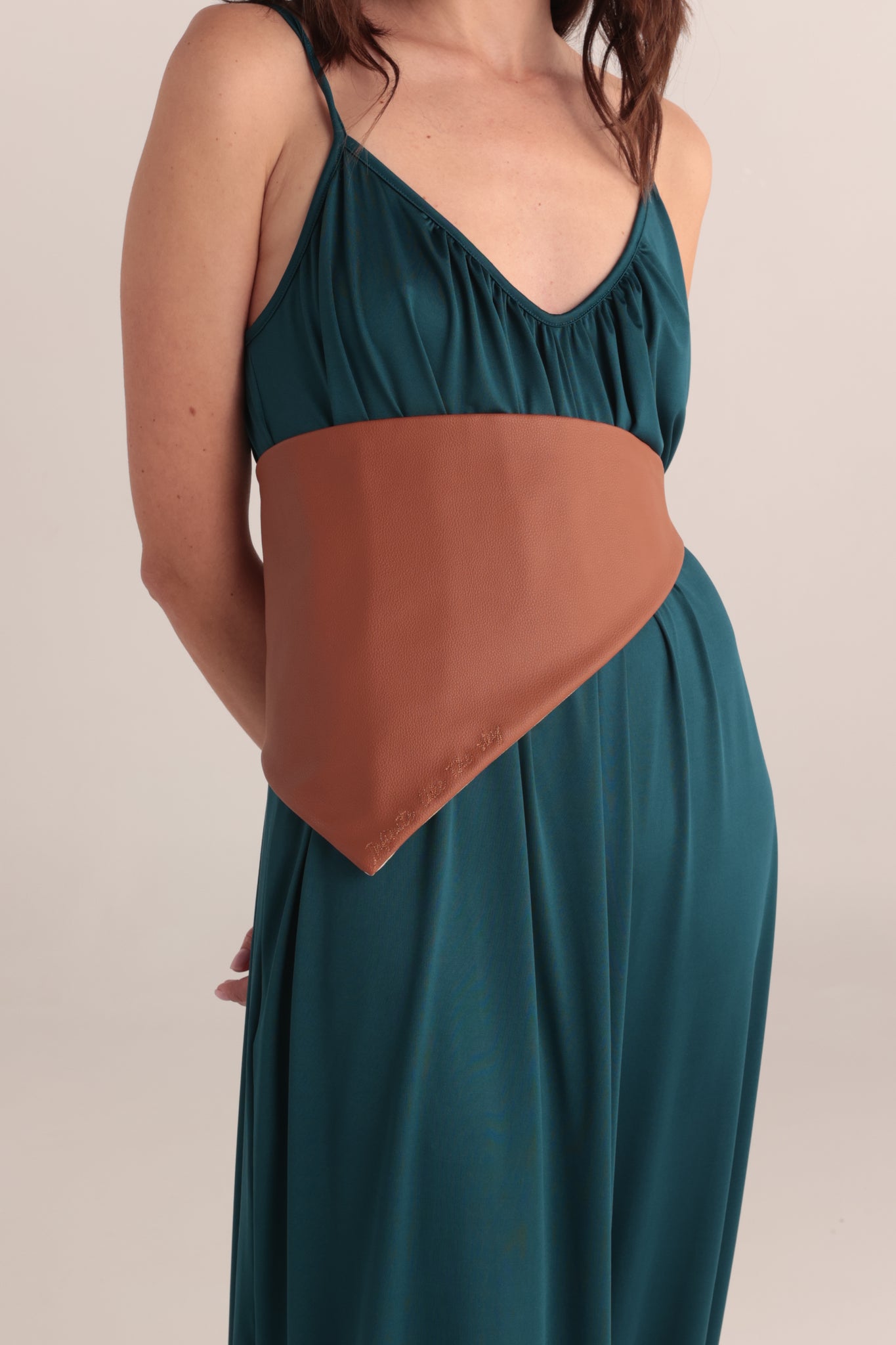 Este nuevo cinturón triagular, es doble faz , por un lado color camel y por el otro color dorado, es el accesorio ideál para combinar con todas nuestras prendas cuando quieres que tu cintura se vea un poco mas. Trae bodada la frase "Infinite like the sky" para recordarnos que somos seres infinitos, que somos el universo entero contenido en un cuerpo lleno de luz.            Color: camel y gold